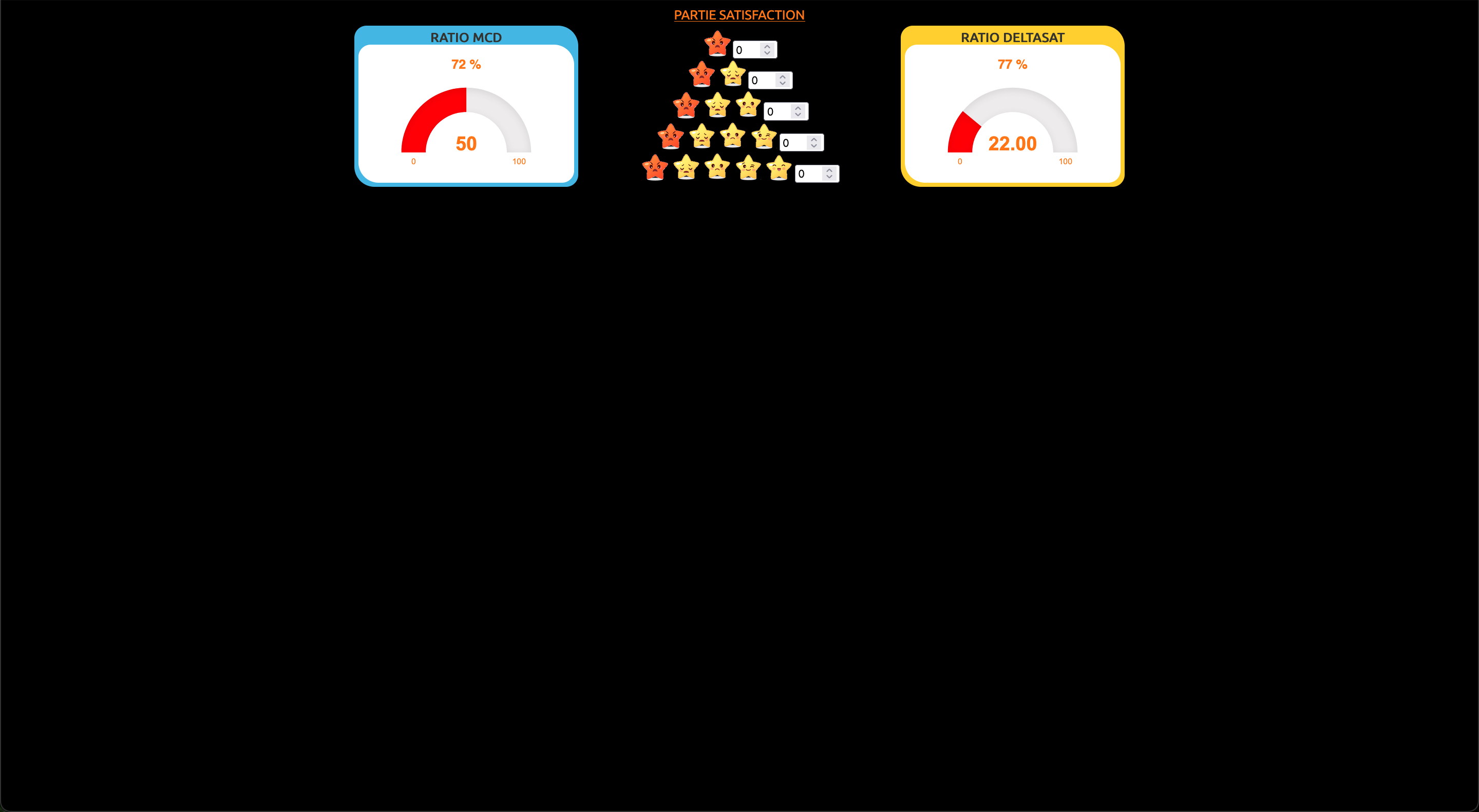 J’ai donc imaginé une interface simple et conviviale permettant de calculer précisément le taux de satisfaction à partir des mails de retour client, puis de visualiser rapidement la progression et les efforts encore nécessaires.
